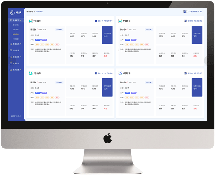 基于心脏康复科室全业务流程打造,通过智能信息管理,以标准化临床路径为指导,实现全方位、多维度记录患者病情,全面快捷地记录康复过程。
